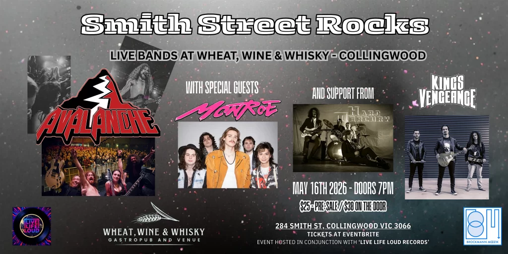 Smith Street Rocks at Wheat, Wine & Whisky is a must for anyone craving an authentic rock vibe. This venue captures the heart of Collingwood's music scene, promising an electric atmosphere as AVALANCHE and MONROE take the stage. Expect a night filled with high energy and a crowd that truly appreciates live music.